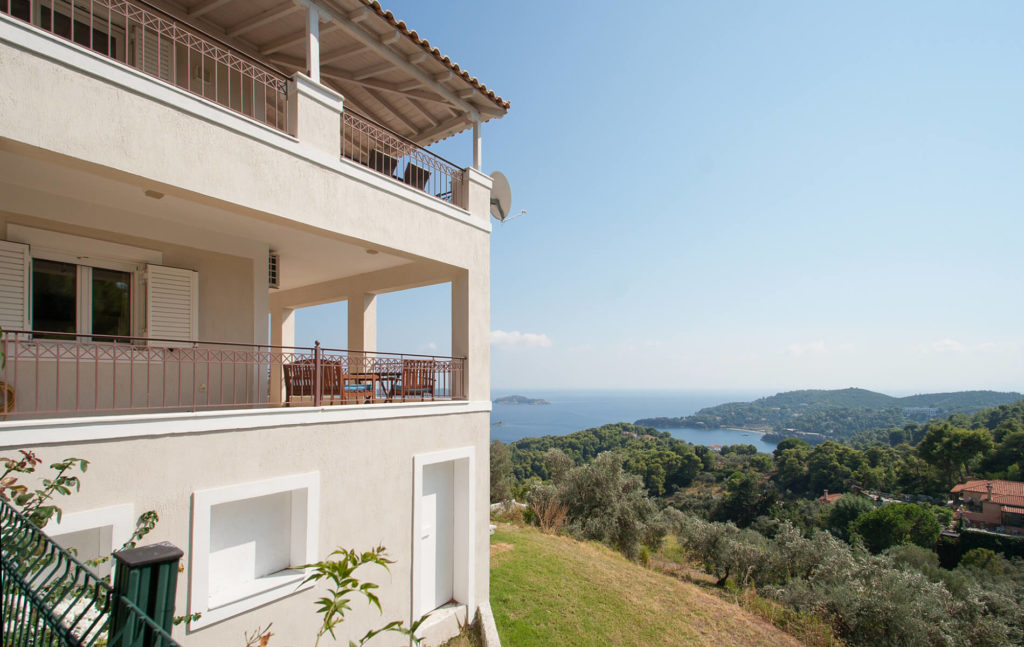 Exquisite views of the Aegean Sea and the lush green pine hills of Skiathos. Located only moments away from Achladies beach and dozens of other famous beaches and landmarks.
